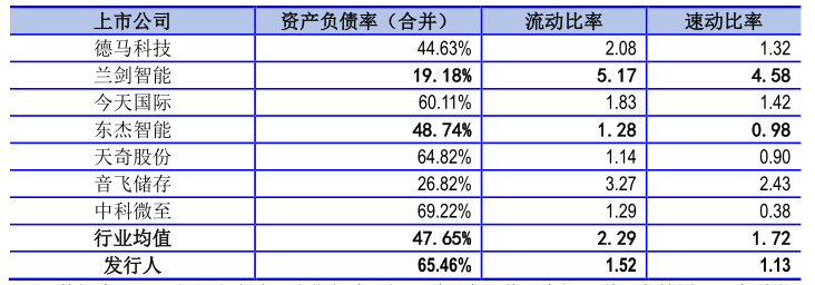 存货及应收账款的持续增加,还给欣巴科技流动性资金带来了不小的压力。如下图所示,欣巴科技流动比率、速动比率均低于同行可比上市公司平均值,资产负债率则大幅高于同行平均值,偿债能力明显偏弱。