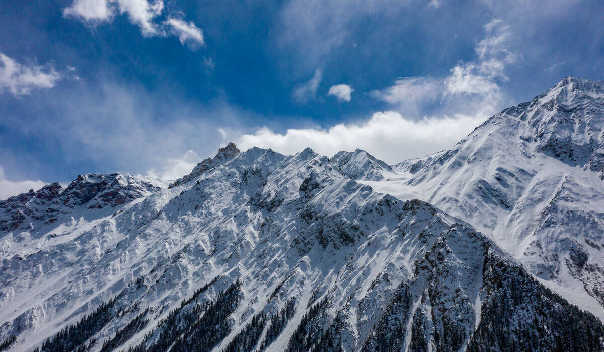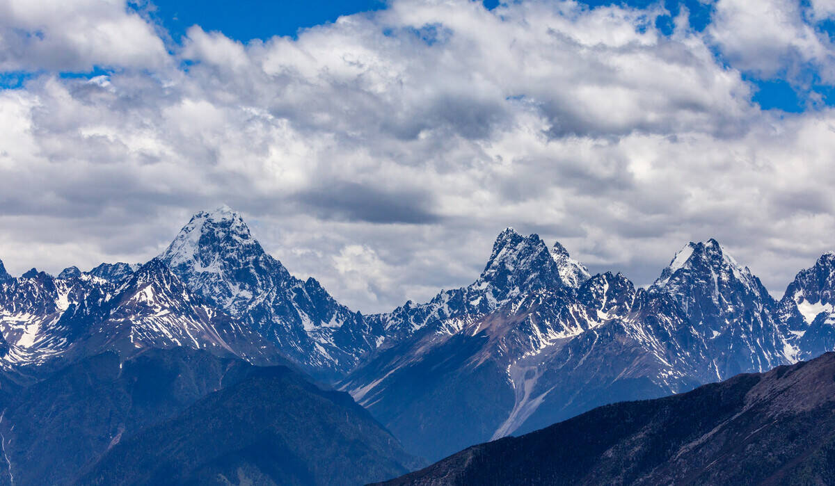 从远处望去,众峰并肩,宛若一道顶天立地的冰雪屏障。