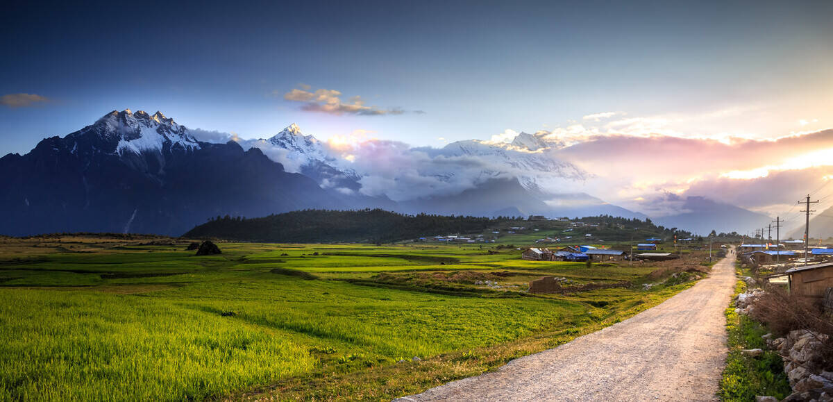 雪山冰川、田园牧场、河滩谷地、古老文化遗址和当地的民风民俗构成了一幅神秘、古朴而壮丽的画面。