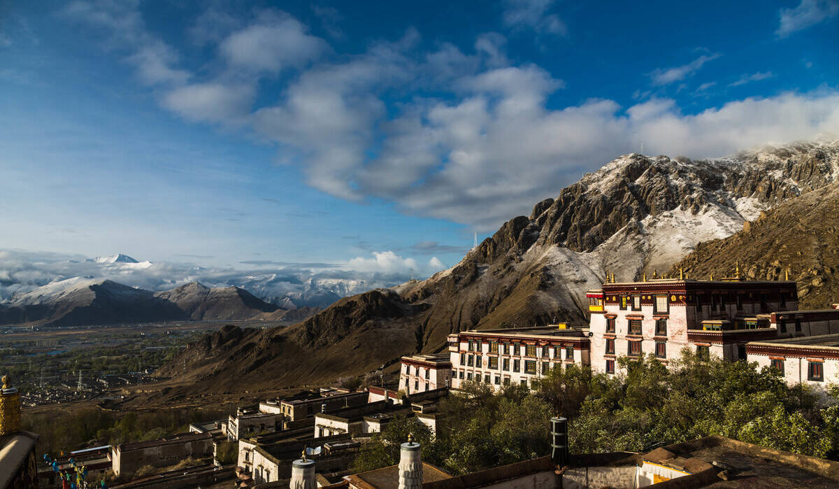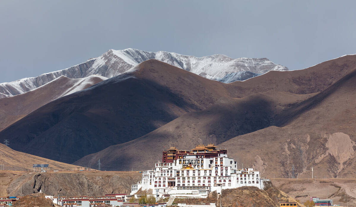 位于日喀则泥色日山下的扎什伦布寺,依山而建,背附高山,宫墙沿山势蜿蜒迤丽。