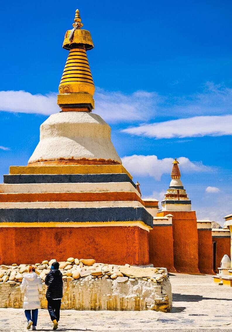 殿堂、佛塔、塔墙、僧舍如星散布,远眺气势非凡。