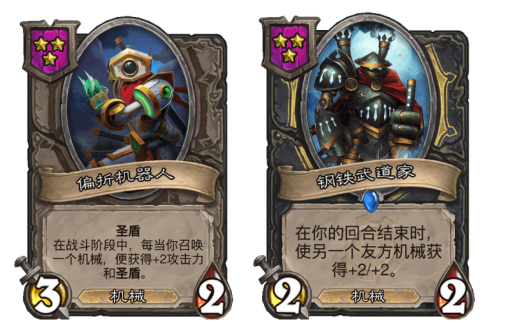 那么三本有哪些优质随从可以选择呢?偏折机器人加上钢铁武道家的组合,在最新的20.8补丁当中,偏折机器人也被增强了,每当召唤一个机械就能提高2点的攻击力。前期的作战能力大幅度提高,而且钢铁武道家可以给偏折机器人叠加BUFF,这么早拿到偏折,到了决赛圈偏折机器人的身材也会涨到很高。关键是后期可以通过给钢铁武道家贴磁力机器人和吵吵模组,让钢铁武道家也能给偏折机器人补盾。2个随从就能形成一个小体系~