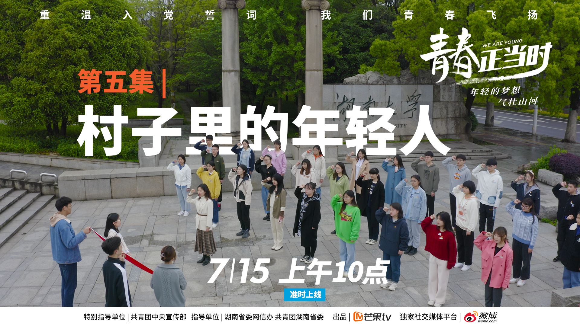 由芒果TV出品,共青团中央宣传部特别指导,湖南省委网信办、共青团湖南特别指导的,为庆祝中国共产党建党100周年隆重推出的大型青春励志纪录片《青春正当时》第五期《村子里的年轻人》今日播出。本期讲述的是一群创新助力乡村振兴,绽放青春之光的湖南大学年轻人的故事。大学生能为扶贫做些什么?如何利用自己的知识为乡村振兴贡献自己的力量?这群大学生给出了属于自己的答案。