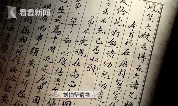 在中央档案馆馆藏中,有一封革命烈士刘伯坚写给其亲属的遗书。潇洒的笔迹中“生是为中国,死是为中国”的豪言壮语,今天看来依然感人至深,信中谆谆嘱告自己的孩子要继续他毕生为之奋斗的革命事业,充分表达了一个共产党人坚定的革命信仰和催人泪下的家国情怀。