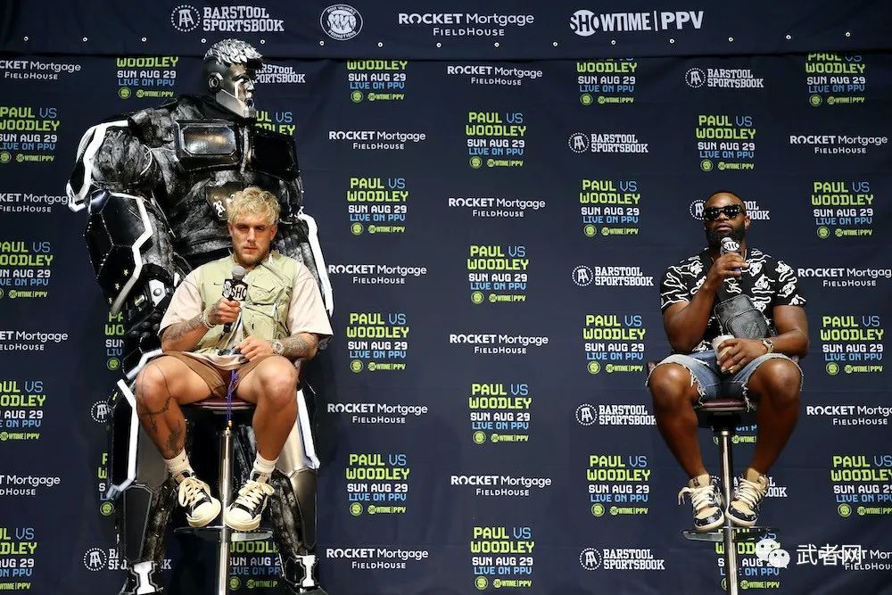 武者网讯 网红杰克·保罗(Jake Paul)与前UFC次中量级冠军泰伦·伍德利(Tyron Woodley)的拳击比赛,即将于8月29日在美国克利夫兰举行。在赛前新闻发布会上,双方进行了奇怪的打赌,输的人要纹身对方的名字在身上。