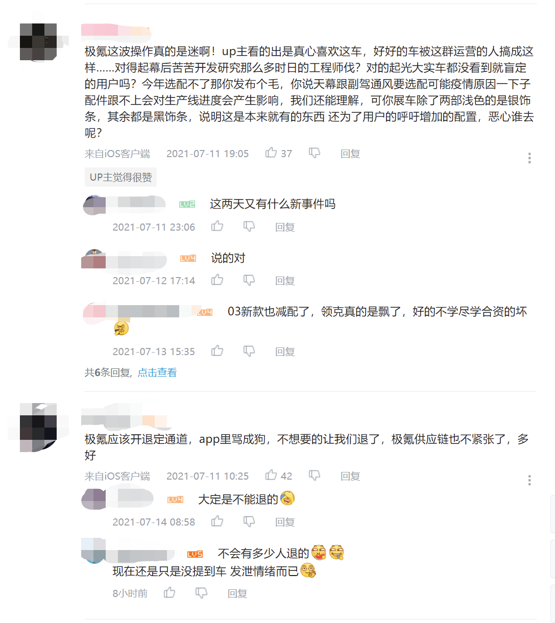而对此,有车友表示自己这些把相关担忧发到极氪的App里,但很快就被运营拉黑了,“根本不让说不好的,就得夸,这就是所谓的用户共创?”