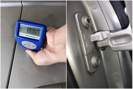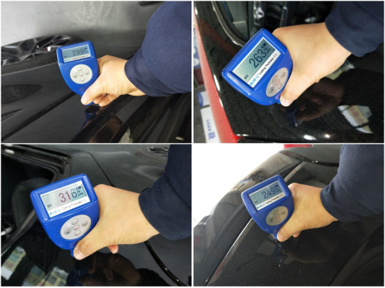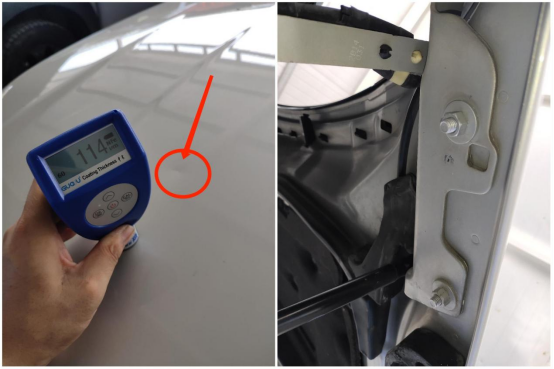 右后翼子板、车门漆面数值也偏高,有过钣金修复。