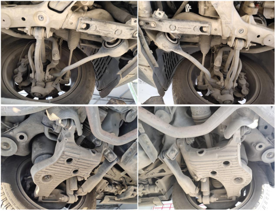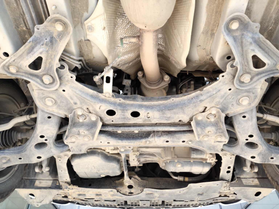 看完内饰,我们将车辆举升,检测底盘部分。前后防撞钢梁均正常,无变形,无拆卸。