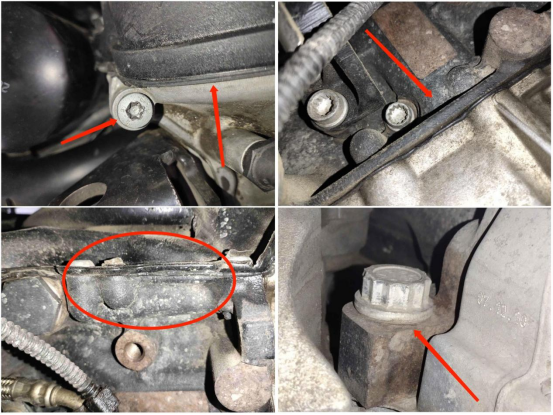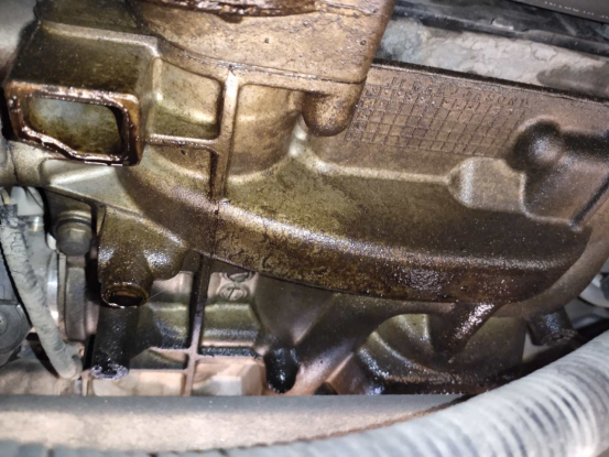 变速箱与发动机的连接处也有渗漏。