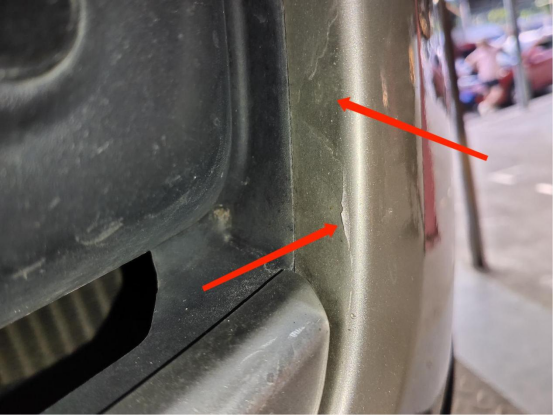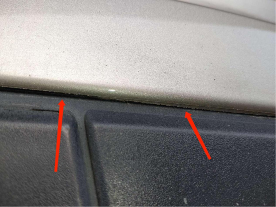 后保险杠缝隙处漆面有明显毛刺,有过做漆。