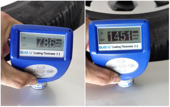 左后车门、翼子板漆面数值786、1451微米,有过钣金修复。
