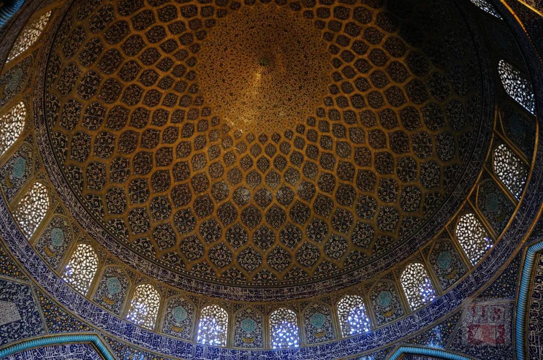 最为神奇的就是透视技术的应用,地毯的图案会随着你的移动而呈现出不同的变化,尤其清真寺圆顶在伊斯兰文化中象征着至高无上的天空和无限想象的天堂,面对它会激发出人们对于自然和神灵的敬畏之心。