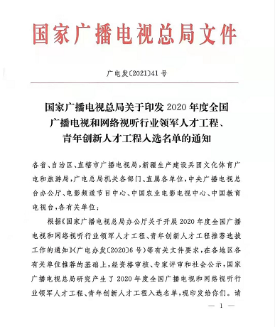 近日,国家广播电视总局发布《关于印发2020年度全国广播电视和网络视听行业领军人才工程、青年创新人才工程入选名单的通知》,原济南广播电视台党委书记、台长成功入选2020年度全国广播电视和网络视听行业领军人才工程名单。