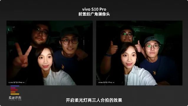 另外,vivo S10 Pro的前置超广角也是支持夜景模式的,开启柔光灯,两三个人合拍的效果还是很令人满意的。