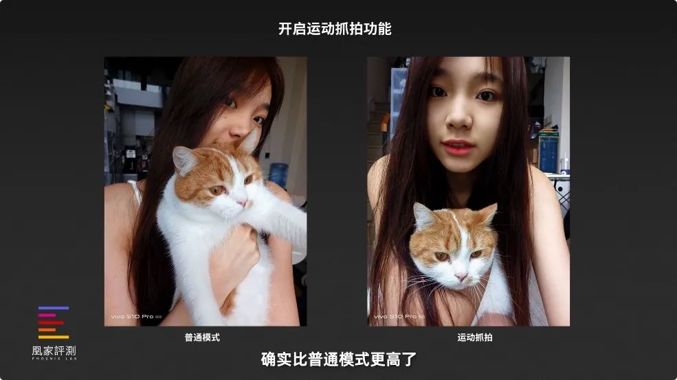 我们尝试了跟患有“多动症”的猫咪拍合影,成片率确实比普通模式更高。