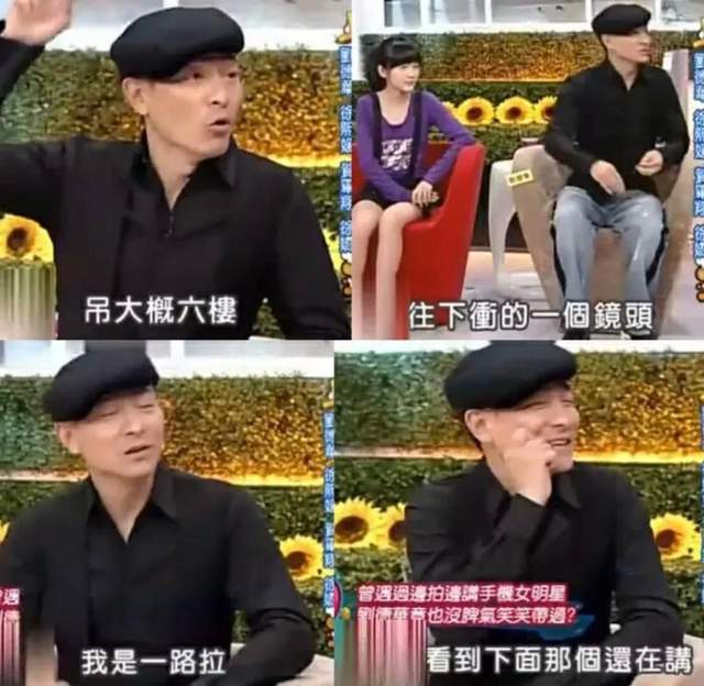 自己在下面悠闲的跟闺蜜打着电话,导致刘德华就这样被足足吊在空中半个小时。