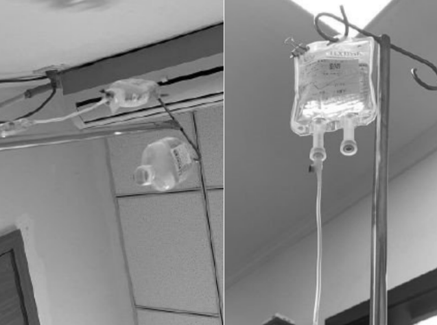 当天张哲瀚似乎是躺在医院输液,所以有很多第一视角的输液治疗照片被曝光。
