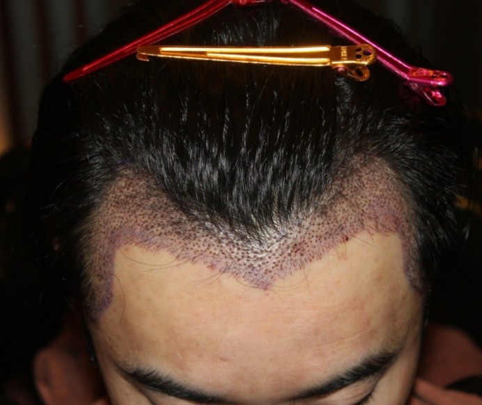 但最夸张的还是华晨宇头皮上的一圈青紫色痕迹,据说是因为植发所造成,从高清生图中来看,这画面实在有些可怕。