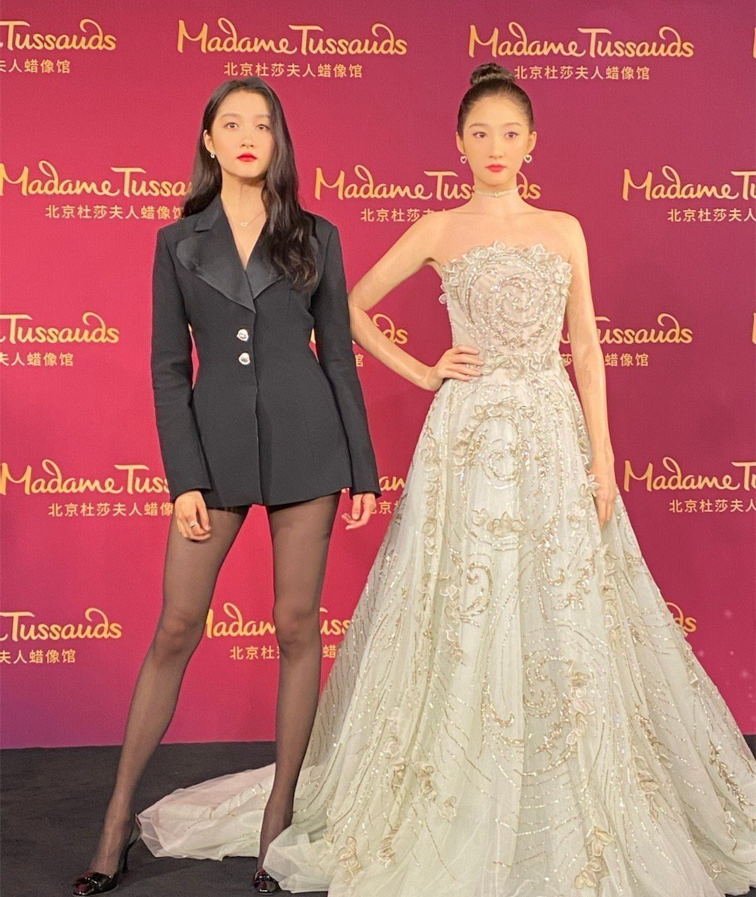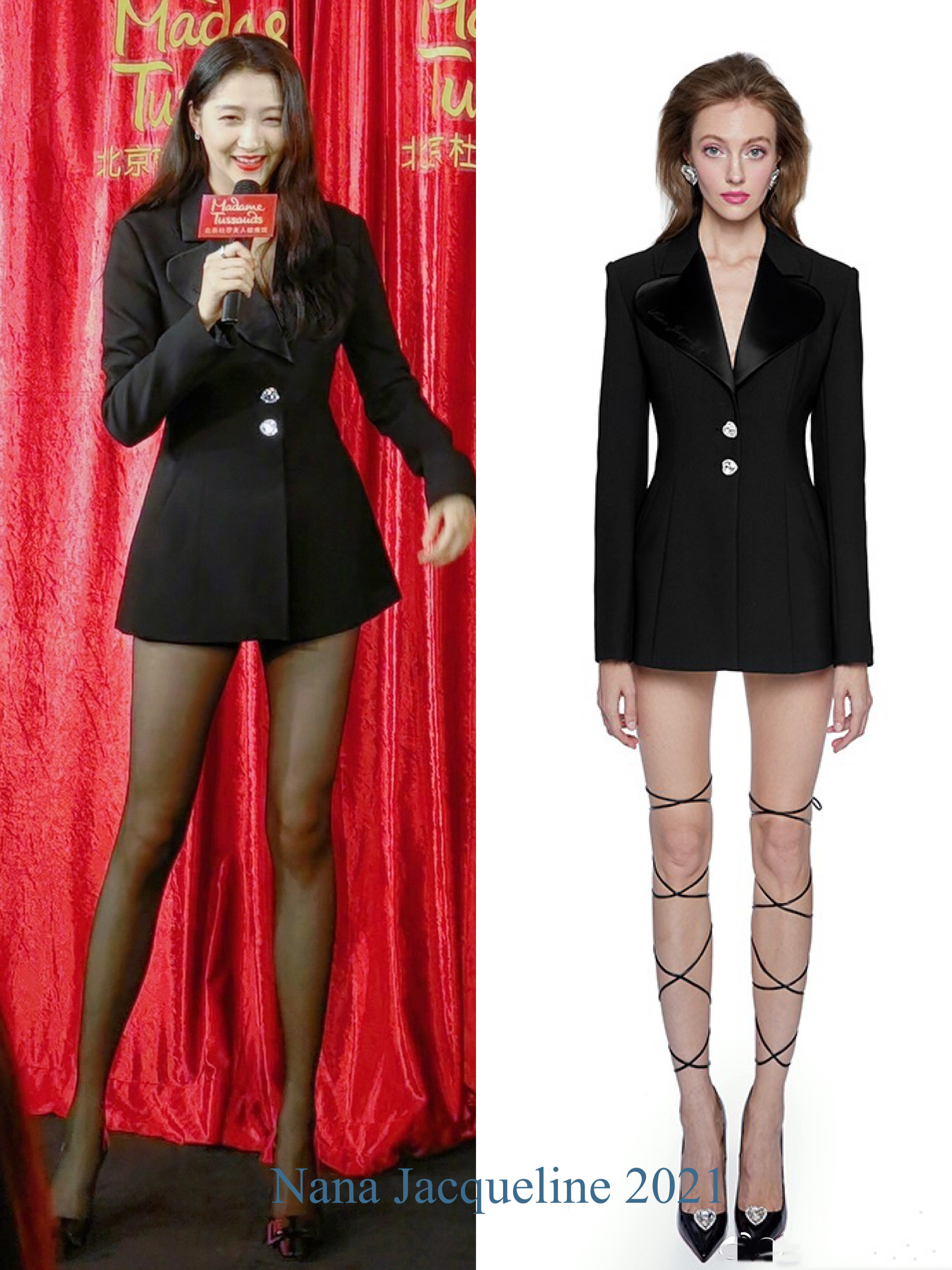 近期,亮相蜡像揭幕仪式的关晓彤穿了一套x型的收腰西装短裙搭配尖头高跟鞋,大秀美腿,这套造型备受好评,比扬短避长的公主裙更适合她。