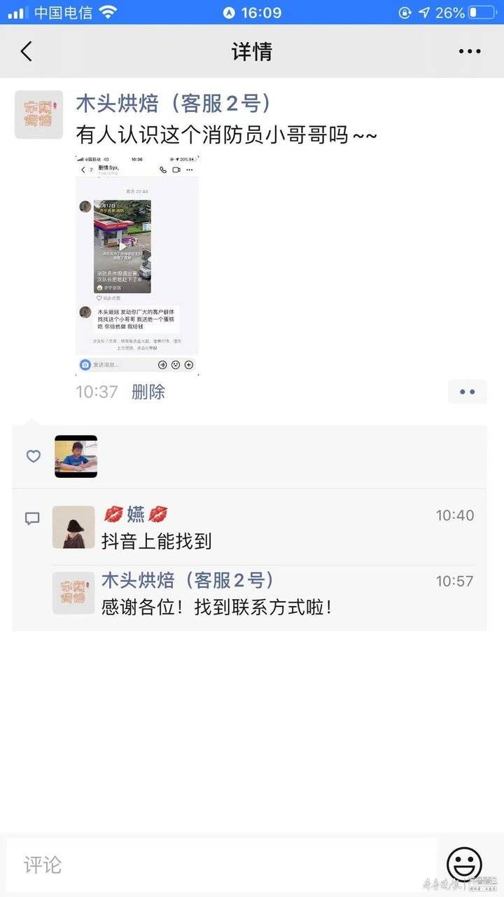 截至目前,这则短视频已经收获了超过500万的赞。而远在广西柳州的苏女士看到后更是大受感动,立刻通过抖音后台联系上了她熟悉的济宁本地一家烘焙店,并留言说,麻烦店家给这名消防战士定制一块生日蛋糕,费用她来出。7月16日,记者联系上了位于供销路的木头烘焙店,店长翟君回复说,确实有这么回事,“苏女士是我们店的会员,前两年曾专程来济宁学习烘焙,她把这个视频转给我们之后,也让我们万分感动。”