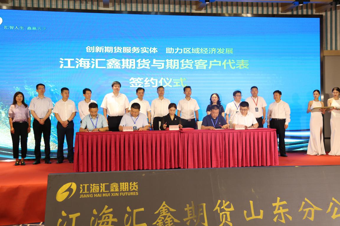 论坛现场,江海汇鑫期货山东分公司举行了揭牌仪式,现场八家产业企业和资产管理机构代表与江海汇鑫期货签订合作协议。江海汇鑫期货山东分公司的成立及此论坛的成功举办,标志着济南市完善全牌照金融机构体系、深入推进产融结合迎来新突破。