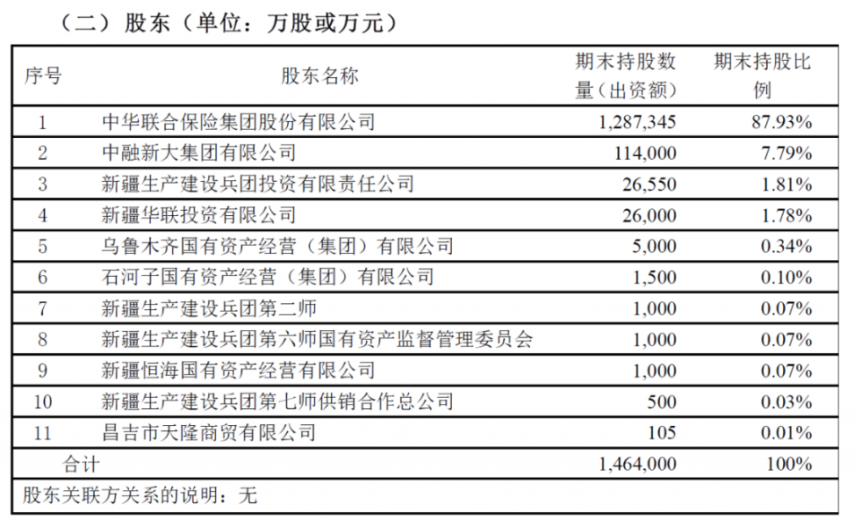 中华联合财险股东持股比例一览表