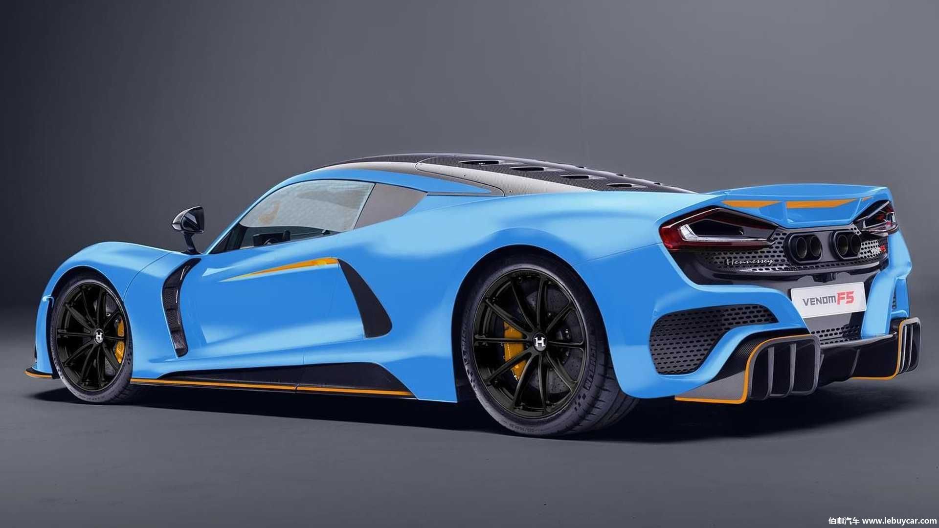 【佰咖汽车·进口新车资讯】我们从外媒获取到一组Hennessey Venom F5(轩尼诗毒液)定制版官图发布。新车将限量发售24台,将采用特殊的蓝色Arione车漆,内饰采用了橙色。动力上新车将搭载6.6升V8发动机,百公里加速时间2.6秒。