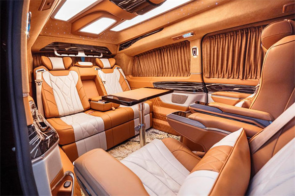 奔驰V260L锦绣河山,中后餐搭载有中控电子冰箱,柏林之声音响系统,车载智能新风系统等等,随时随地开启一场顶级视听盛宴,绝对不在话下。车顶氛围灯,车地板铺设地垫,隔音效果满分,两侧设置隐私窗帘,绝对满足用户的舒适生活体验要求。你看,奔驰V260L锦绣河山的设计团队,打造最为豪华生活休闲娱乐设施,最大限度给予客户以舒适和享受。