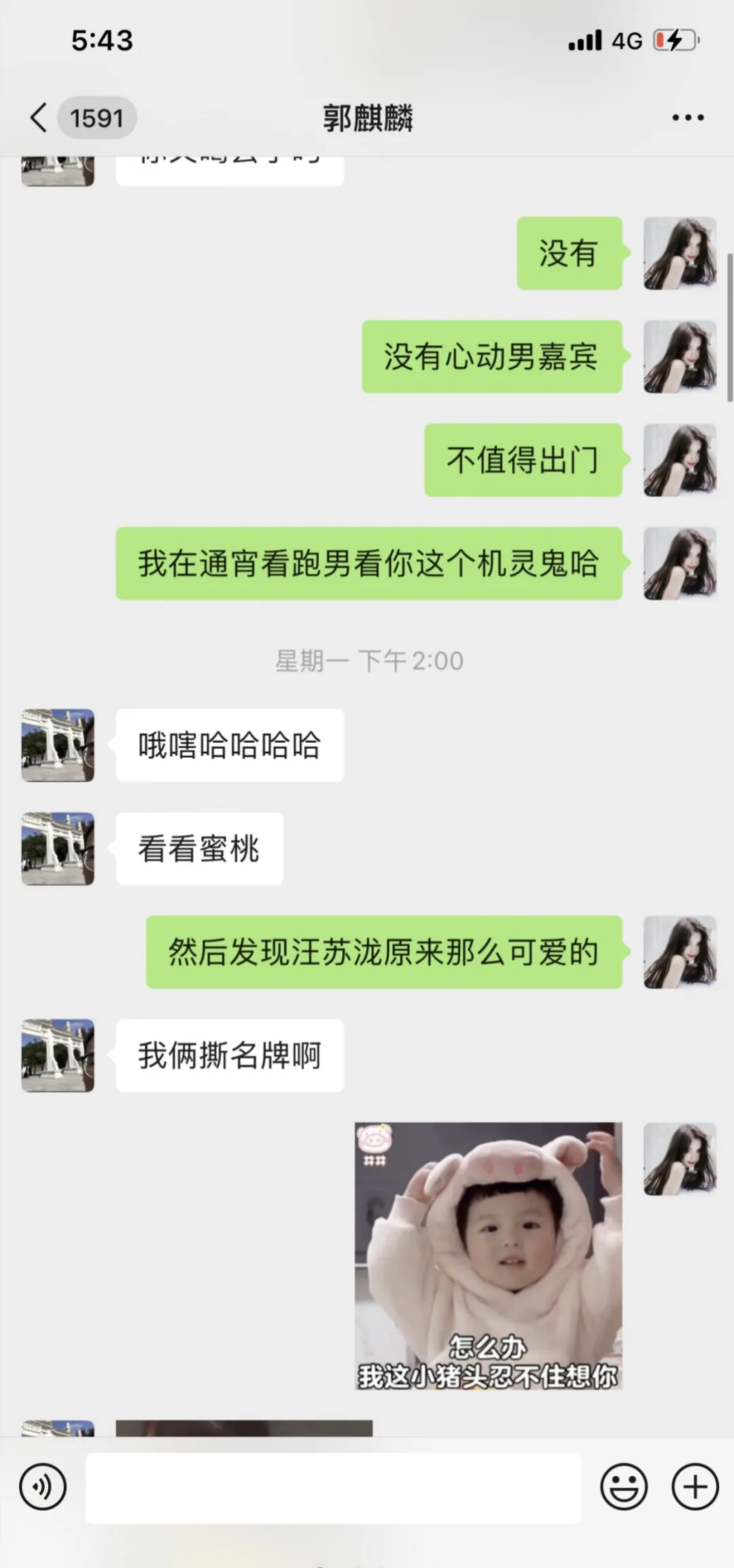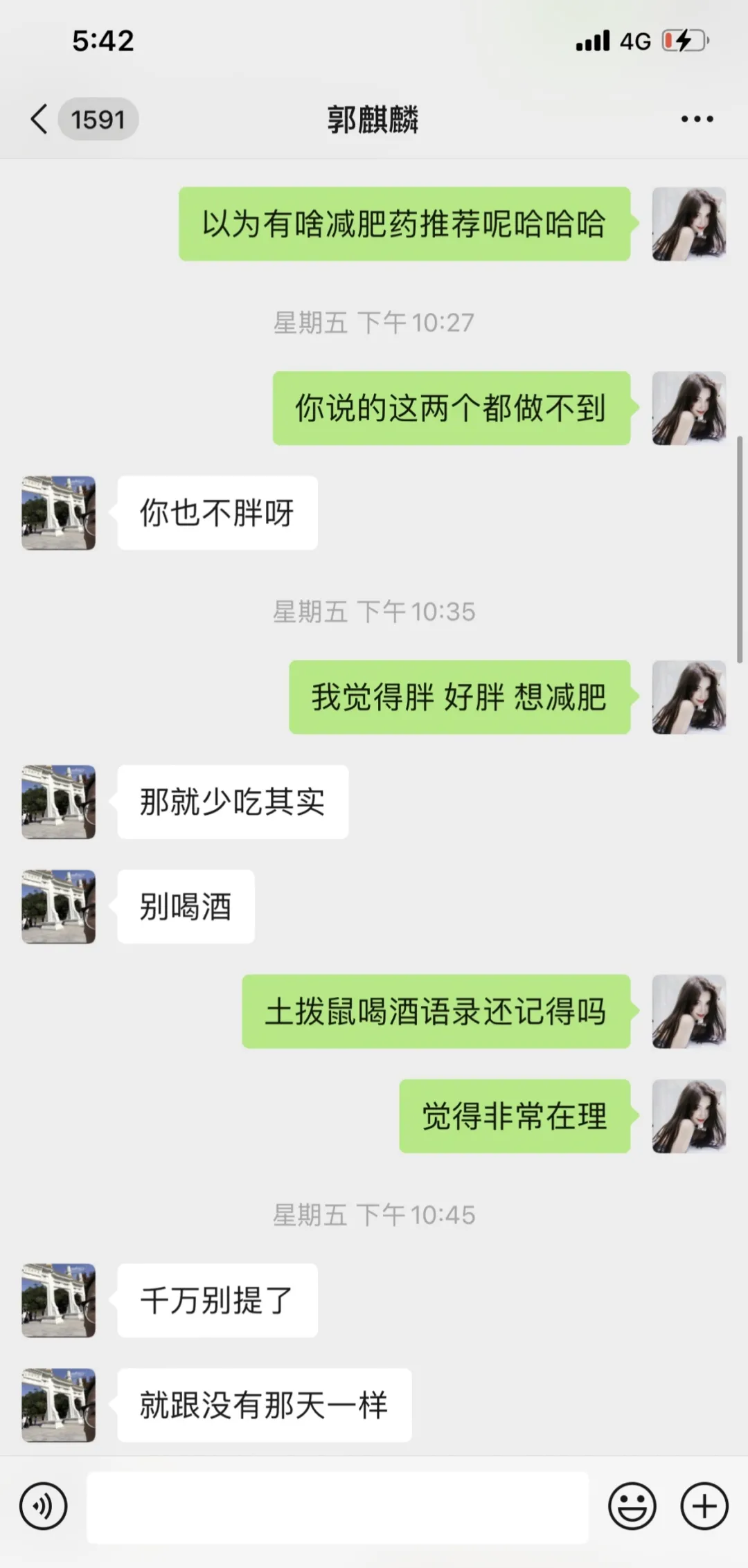 反而是郭麒麟,在“安珀wang”放出的聊天记录最后,似乎还有一点点挽回的意思。