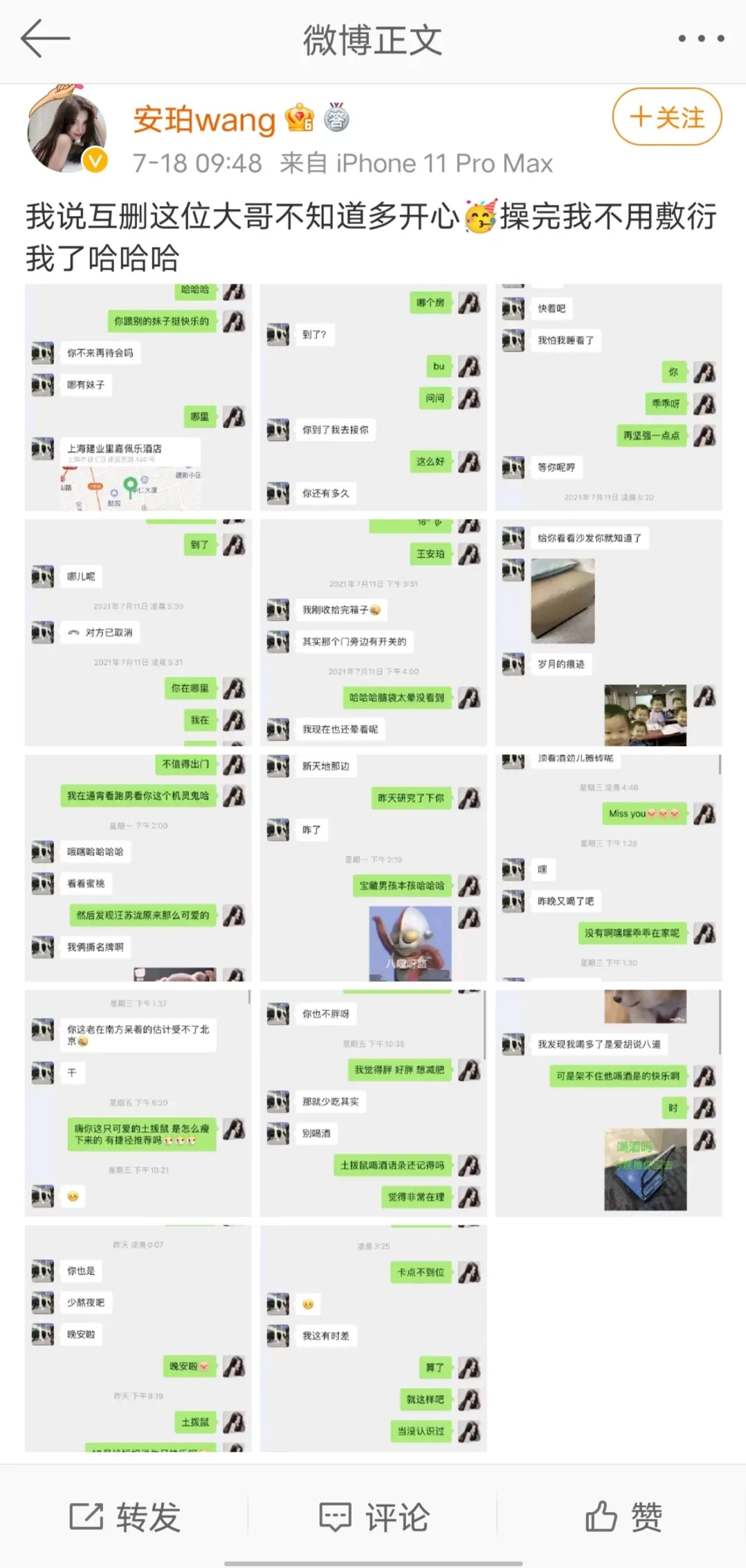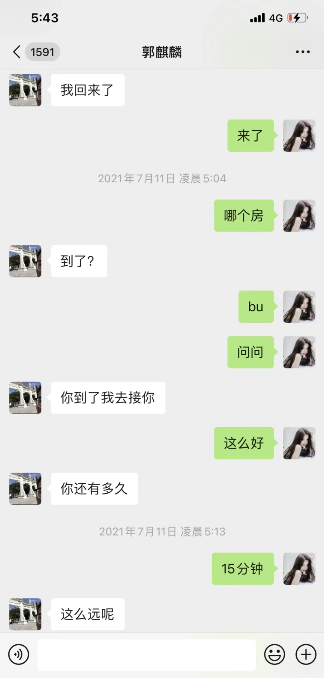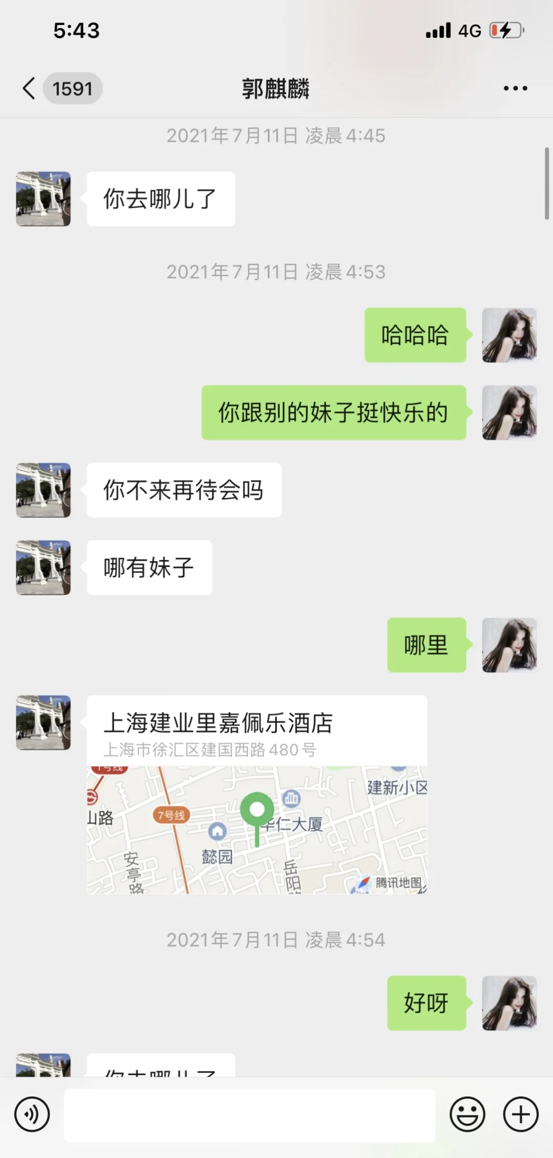 7月18日,一位名为“安珀wang”的用户,在社交平台上放出了一组图片,图片内容是她与郭麒麟的聊天记录。