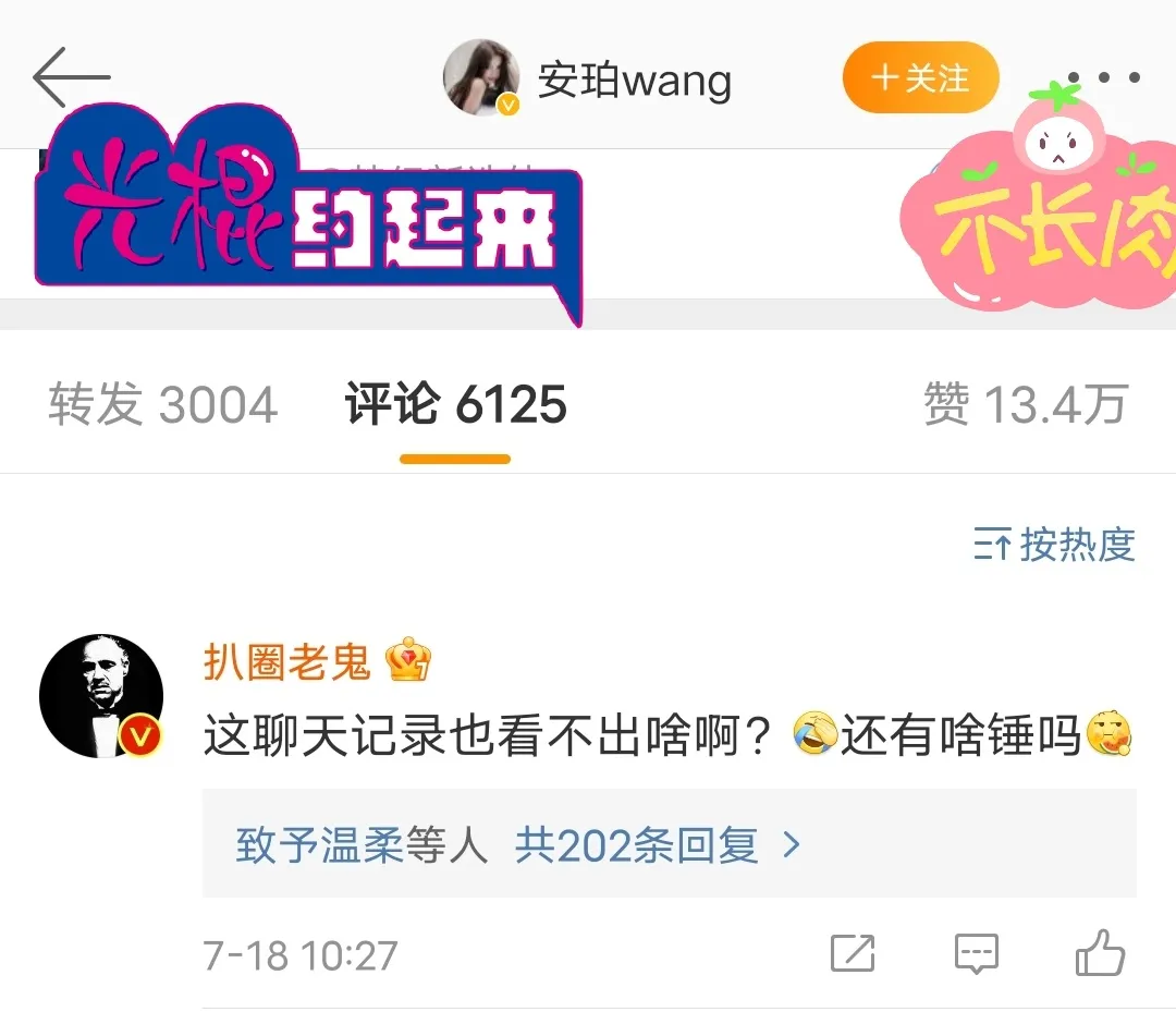 热评一直接就问,“这聊天记录也看不出来啥啊,还有啥锤嘛”后面还跟了一个吃瓜的表情,这段时间的瓜都太干净利落了,看来网友们是吃惯了自助餐,已经不想自己动手了。