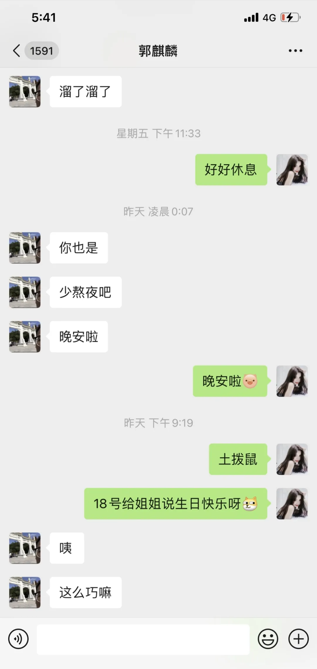 两个人一直以来的沟通都十分友好,“早点休息”、“少熬夜”,这种对朋友敷衍式的关心,两个人经常用。