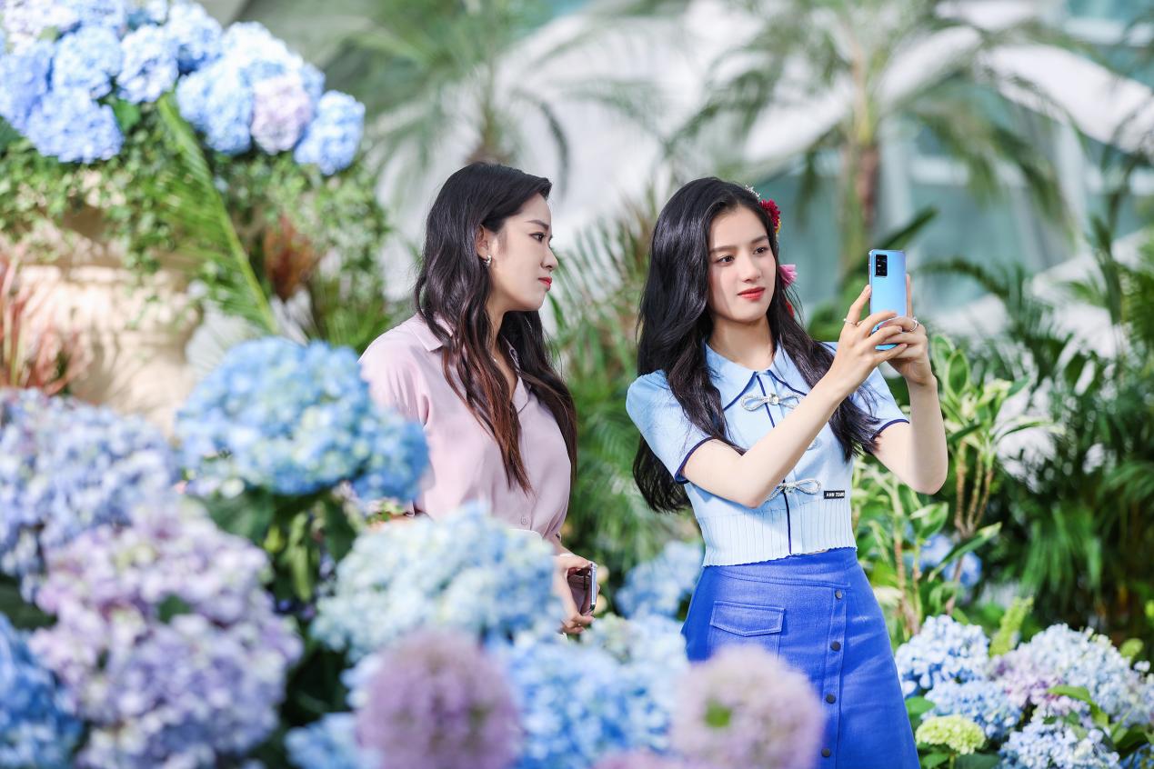 紧接着张婧仪身穿蓝色小礼服亮相百花丛中,头簪花朵步步清新,在4400万柔光双摄的照亮下她显得美丽又多情。不但清新自然还多了股亲近感,这是其他手机所少有的。vivo S10系列此次主打自然美”理念,摒弃过度的修图和美颜,让你保持自我、美出自信。
