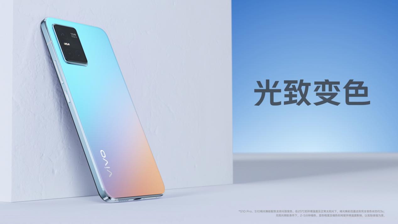 这样的特性与vivo S10新机有异曲同工之妙。于7月15日晚举行发布会的vivo,向观众展示了S10系列时尚前卫的背部设计。采用了光致变色的版本,呈现出冰蓝和粉橙的渐变,梦幻又时尚。