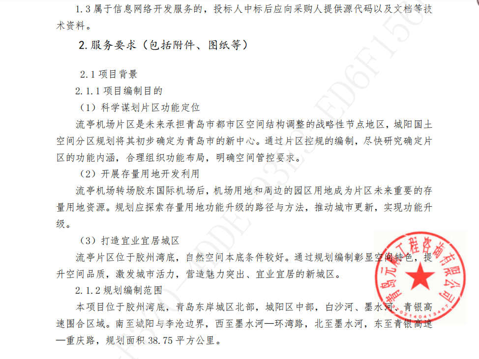 中标公告显示,本次规划的范围为白沙河、墨水河、青银高速围合区域,南至城阳与李沧边界,西至墨水河- 环湾路,北至墨水河,东至青银高速一重庆路,规划面积38.75平方公里。规划内容主要包括:流亭机场片区控制性详细规划、流亭机场片区城市设计两大部分。