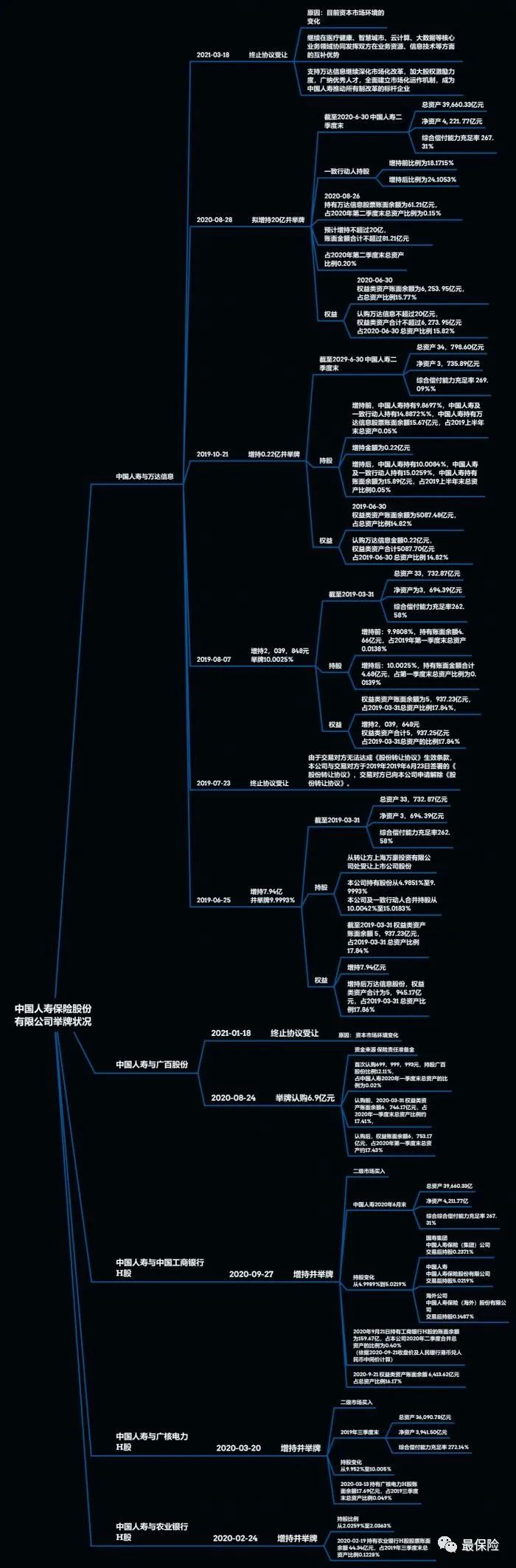 此外,2021年1月,和谐健康发布了补充此前增持万达信息的公告。2021年1月,中国人寿还发布公告称,由于资本市场环境变化,终止受让2020年8月公告的认购广百股份比例12.11%的协议。