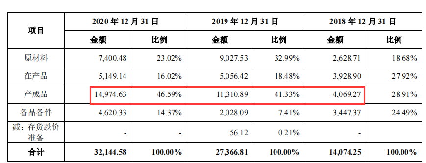 招股书披露,公司存货构成中产成品金额分别为4069.27万元、11310.89万元、14974.63万元,分别较上期增加684.78万元、7241.62万元、3663.74万元。