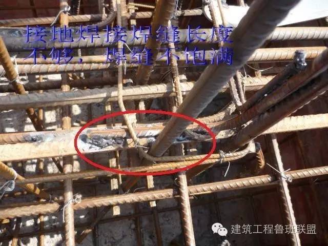 ①引下线、均压环、避雷带搭接处有夹渣、焊瘤、虚焊、咬肉、焊缝不饱满等缺陷。