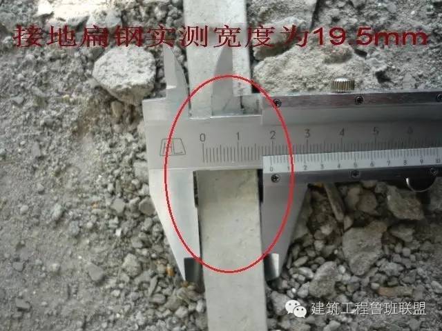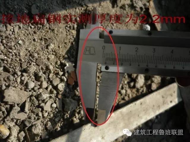避雷接地镀锌扁钢实测为19.5×2.2mm,不符合规范和设计要求。