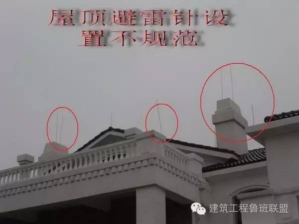 ①屋顶避雷针设置不规范,用圆钢代替专用避雷针。