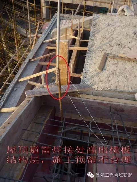 ②焊渣不敲掉、避雷带上的焊接处不刷防锈漆。