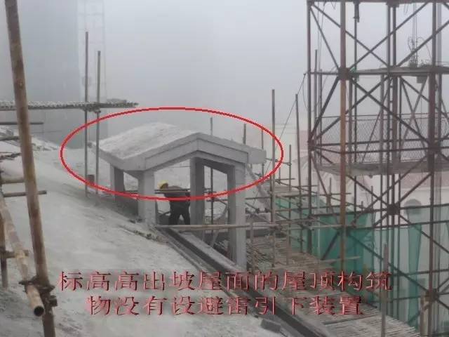 ①电气设计工种应认真复核土建设计标高,对于高于坡屋面的构筑物(如排烟道、造型亭子等)应严格按照防雷设计规范设置避雷装置。