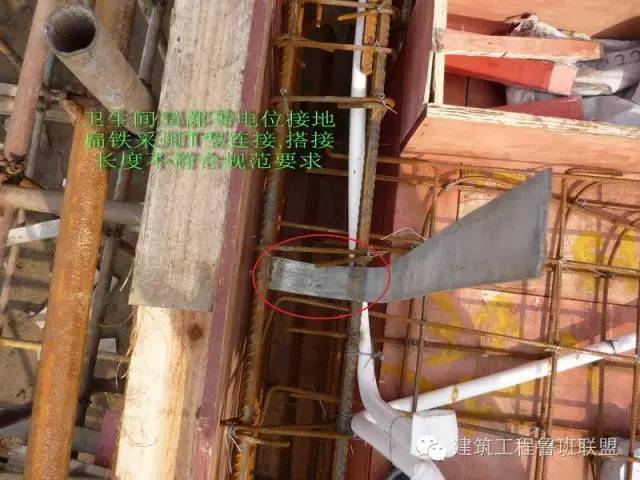 ②施工单位土建班组在砌墙时水电班组没有跟踪衔接到位,特别是在墙面粉刷之前还没有将扁钢引出,并敷设到位。