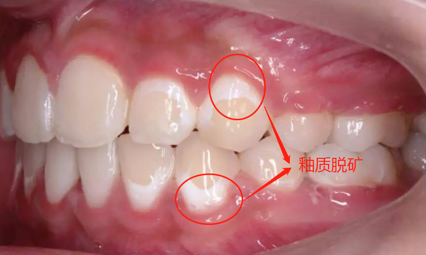 釉质脱矿就是佩戴固定矫治器的患者的牙齿表面出现白垩色的斑块,是龋病的最初表现!因此如果不及时治疗或者提前预防的话,那接下来釉质脱矿的牙齿则会演变成蛀牙。