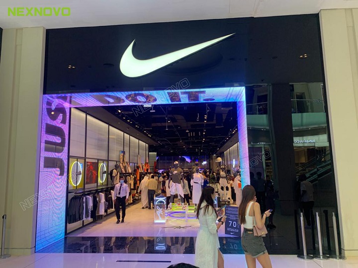 为进一步重塑NIKE迪拜店新格局,提升消费游逛门店的尊崇体验,NIKE迪拜店本次选用了晶泓光电玻璃屏助力NIKE新店打造顶级亮点名片。