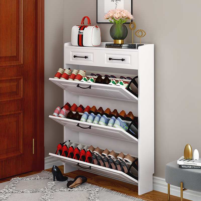 翻斗设计的鞋柜,外表上看来可能是平平无奇,然而内部却是别有洞天。这种设计可以将鞋子的可收纳数量凭空翻三倍,有了这么一款鞋柜,就不用再为鞋子的收纳而发愁了。占地跟普通的鞋柜一样,容量却大了三倍,实用又省事。