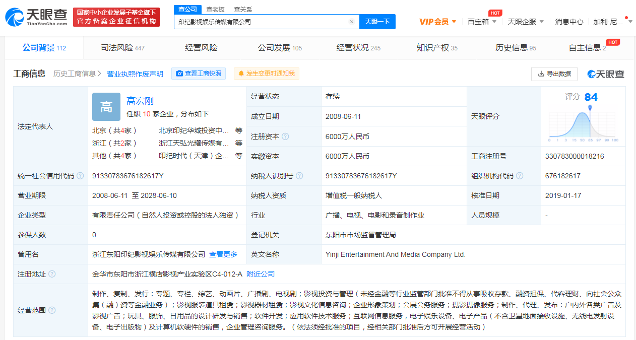 印纪影视娱乐传媒有限公司成立于2008年6月,法定代表人为高宏刚,注册资本为6000万人民币,经营范围包括制作、复制、发行:专题、专栏、综艺、动画片、广播剧、电视剧;影视投资与管理;影视文化信息咨询等。