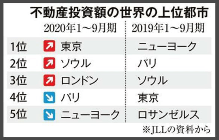 虽然说起日本的房地产,很多人的第一反应还是“房地产泡沫”,以及泡沫破裂后的房价暴跌和居民财富急剧缩水,这也是日本“失去的二十年”的一个缩影。但是现在提起日本房地产,更多的人关注的是“涨了多少”。据仲量联行(JLL)最新的调查显示,疫情以来,东京的不动产投资额达到193亿美元(约2兆日元),居世界首位。排在东京后面的是首尔、伦敦、巴黎和纽约。