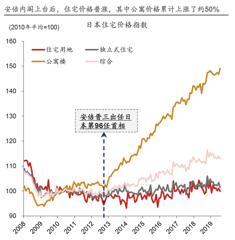 国民收入的增加带动了日本的住宅需求,住宅价格也随之回升,其中公寓楼的价格涨幅较大。