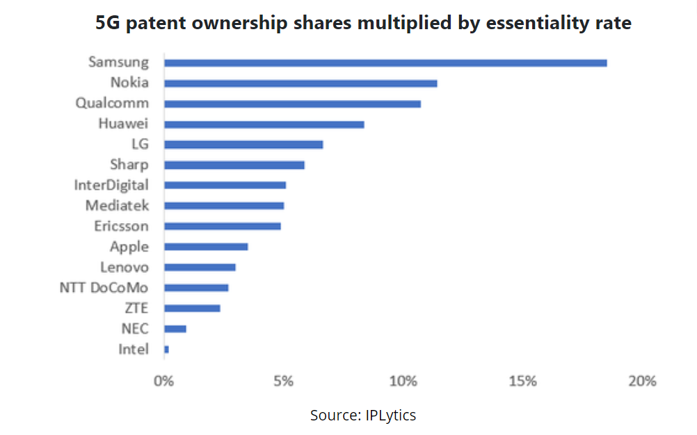 尽管诺基亚的营收逊于手机厂商OPPO、vivo、小米,但从全球5G专利排名上来看,IPlytics统计数据显示,诺基亚在5G必要专利方面排名仅次于三星。原则上,只要诺基亚不放弃这块营收,手机厂商们绕不开诺基亚。